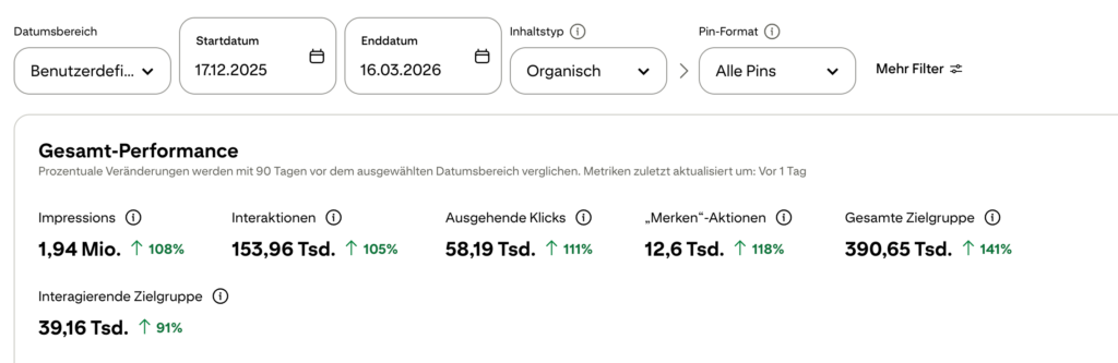 Der Kunde war bereits auf Pinterest aktiv, hat aber jahrelang nur etwa 4 Pins pro Monat gepinnt.